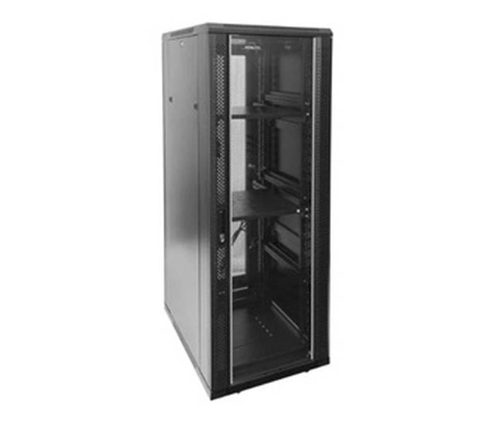 | Característica | - Diseño modular para fácil montaje y desmontaje - Ruedas giratorias para mejor portabilidad Material y acabados - Acero SPCC laminado en frío - Acabado en puerta de cristal - Color: Negro RAL 9004, liso Especificaciones -Capacidad de carga: 800 Kg (sobre pies) y 400 Kg (sobre ruedas) -Grosor de acero: Perfiles: 2 mm / Resto: 1.2 mm / Cristal templado: 5 mm Estándares - ANSI/EIA, RS-310-D, DIN41491 PART1, DIN41491 PART7, ETSI, estándar compatible con 19” International Standard, RoHS Directiva 2002/95/EC, EN 60439-3:1991 + A1:1994C:1994+A2:2001+A-C:2005+AC:2009, EN 60439-1:1999+A1:2004 Dimensiones y peso - 600 x 1000 x 1610 mm - 106 kg |