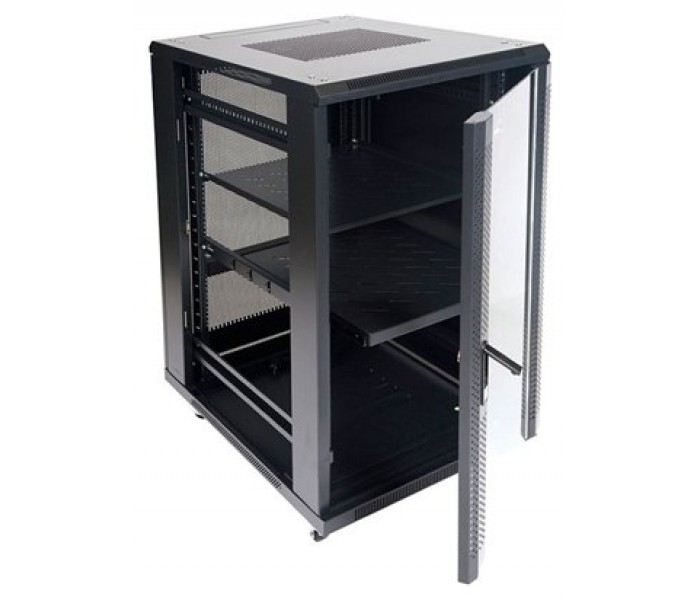 Características | - Altura: 22U - Puerta: Cristal - Tratamiento: desengrasado, limpiado con ácido y pintura fosfórica anti-óxido. - Grado de Protección: IP20 (protección contra la entrada de polvo). - Capacidad de carga: 800 Kg. (sobre pies) | 400 Kg (sobre ruedas). - Material: Acero SPCC laminado en frío. - Grosor de acero: Carriles 2.0 mm. | ángulos 1,5 mm. resto 1,2 mm. - Color: Negro RAL 9004, acabado liso. - Dimensiones: 600x800x1166 - Peso: 73kg Accesorios - 2 bandeja fijas. - 4 ruedas con freno. - 4 ventiladores de techo de 120 mm. - 1 base de enchufes de 8 tomas Schucko con interruptor. - Tornillería de montaje, pies regulables en altura y juego de llaves para cerraduras. |