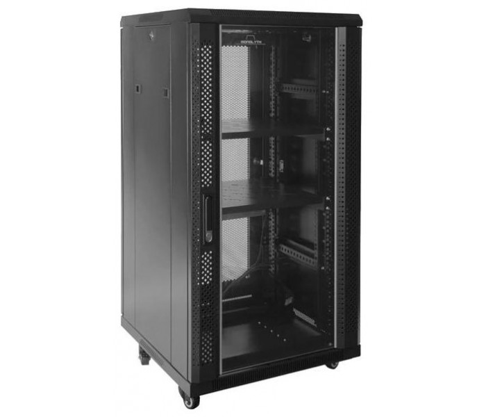 Características | - Altura: 22U - Armario rack con ancho de perfil estándar de 19 - Puerta delantera de cristal - Puerta trasera perforada - Apertura de seguridad Handylock en puerta frontal - Llave en puerta posterior - Estructura básica totalmente desmontable - Techo y suelo con entradas de cables pretroqueladas y ranuras de ventilación - Soportes o pies regulables en altura - Perfiles de rack numerados - Perfiles desplazables en profundidad - Paneles laterales desmontables de fácil apertura con cierre - Espacio accesible por puerta frontal, trasera y laterales - Acabados para evitar electro-estática y entrada de polvo - Cumple con las normativas medioambientales CE y RoHS -Tratamiento: desengrasado, limpiado con ácido y pintura fosfórica anti-óxido. - Grado de Protección: IP20 (protección contra la entrada de polvo) - Capacidad de carga: 800 Kg (sobre pies) y 400 Kg (sobre ruedas) - Grosor de acero: Carriles 2mm, ángulos 1,5mm resto 1,2mm Dimensiones y peso - 600 x 800 x 1166 mm - 73 kg Contiene - 4 ruedas con freno - Tornillería de montaje - Pies regulables en altura - Juego de llaves para cerraduras incluido |