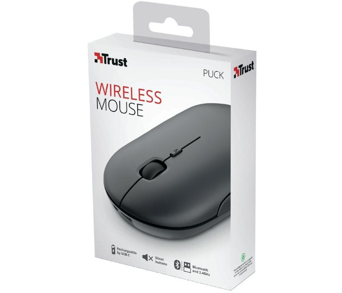 El ratón Puck de Trust está diseñado para ser la solución ideal ante cualquier exigencia del trabajo fuera de casa. Este ratón inalámbrico ultrafino es lo bastante pequeño para llevarlo encima sin por ello sacrificar la facilidad de uso. Está equipado con todas las funciones que necesita, como doble conectividad inalámbrica, botones silenciosos y batería recargable. Y es apto tanto para usuarios zurdos como diestros.Bordes lisos