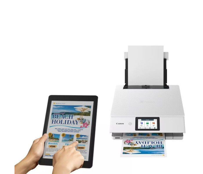 Optimiza el espacio con el diseño elegante, estilizado y compacto de alta calidad de la PIXMA TS8750 de Canon, que se integra en la decoración de cualquier hogar. Disponible en acabados en blanco y negro.