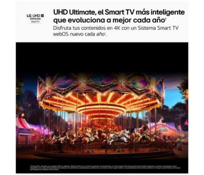- Smart TV webOS 25 que evoluciona a mejor cada año renovándose en tu TV e incorporando las nuevas funciones de la IA y que está preparado para próximos apagones TDT. Más inteligente para una personalización y un control del hogar avanzados: reconocimiento de voz, recomendación de contenidos, configuración de imagen y sonido, asistente virtual y mando Magic Remote con puntero inalámbrico.