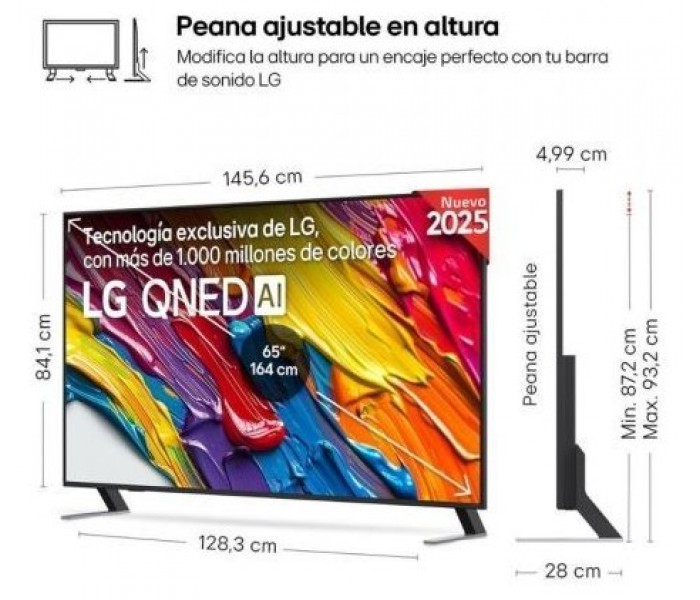 - Funciones Smart: Apple AirPlay 2, Apple Home, Google Cast, LG ThinQ, AI Chatbot, LG Channels
