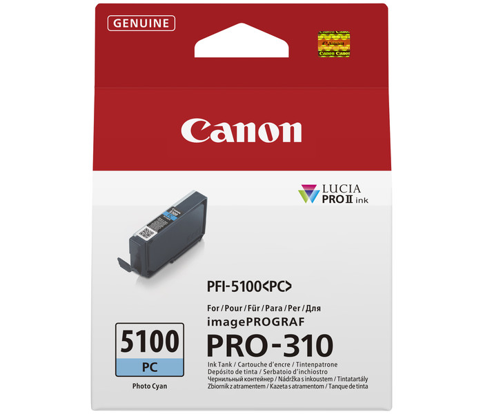 Los cartuchos de tinta PFI-5100 de Canon forman parte del sistema de 10 colores de tinta pigmentada LUCIA PRO II, diseñado para ofrecer resultados profesionales con una calidad de estudio.