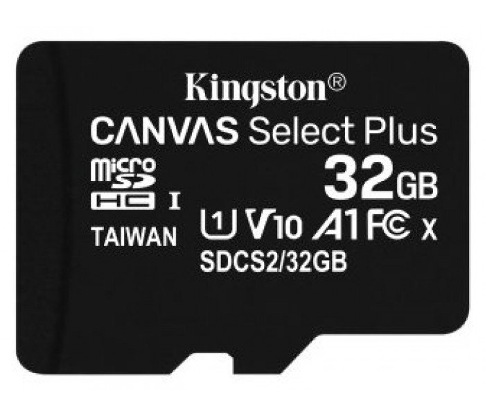 Kingston Technology Canvas Select Plus. Capacidad: 32 GB, Tipo de tarjeta flash: MicroSDHC, Clase de memoria flash: Clase 10, Tipo de memoria interna: UHS-I, Velocidad de lectura: 100 MB/s, Clase de velocidad UHS: Class 1 (U1), Clase de velocidad de vÃdeo: V10. Funciones de protección: Resistente a golpes, Resistente a las vibraciones, A prueba de rayos X, Color del producto: Negro
