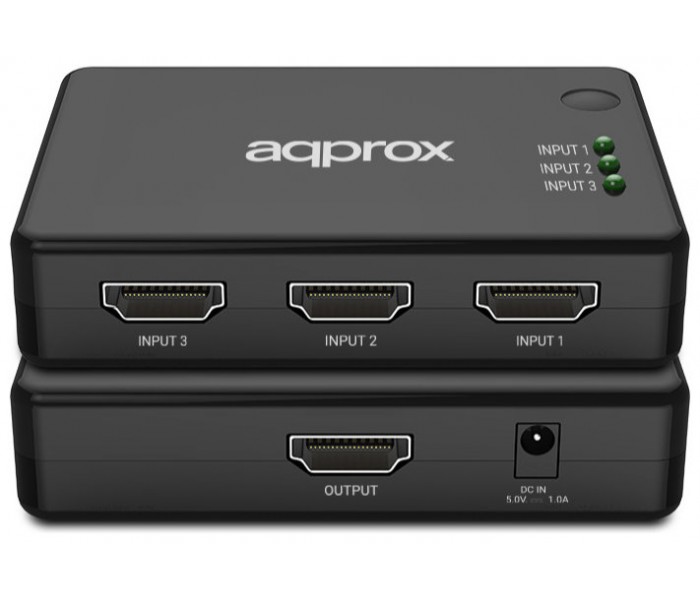 El APPC29V4 es un switch HDMI de tres puertos HDMI de entrada y uno de salida, el cual conectado a su TV le permite seleccionar entre tres dispositivos HDMI, ocupando un solo puerto HDMI en su TV, es ideal para aquellos TV que tienen pocos puertos HDMI de entrada y necesitan conectar varios dispositivos a la vez. Soporta una calidad máxima de imagen de 4K/30Hz, incorpora un botón de selección de fuente de entrada manual y control remoto.. Características:. Soporta 3 entradas HDMI.. Compatible con HDMI 1.4 b.. Selección de fuente mediante botón manual o por control remoto.. Resolución hasta 4K/30 Hz.. Profundidad de color de 12 bits, ancho de banda de hasta 3.4 Gbps.. Detección automática de fuentes.. HDCP.. Soporta DTS Digital y Dolby Digital.