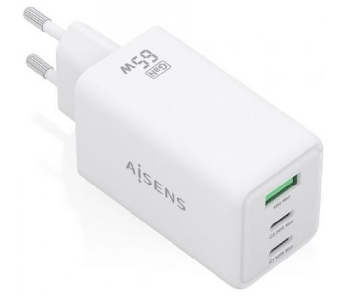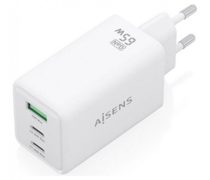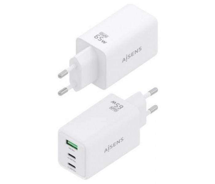 ASCH-65W3P072-W – Cargador GaN 65W, 2xUSB-C PD3.0 QC4.0, 1xUSB-A QC3.0, Blanco