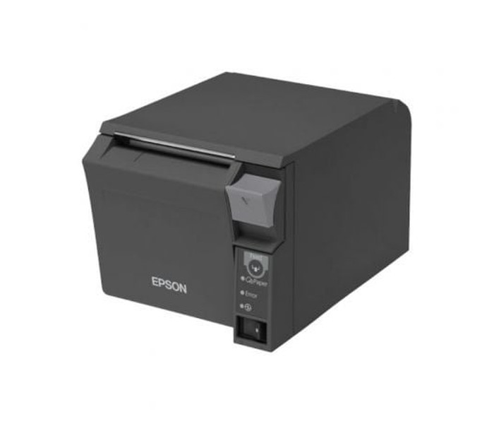 Epson TM-T70II (025A0). TecnologÃa de impresión: Térmico, Tipo: Impresora de recibos, Velocidad de impresión: 250 mm/s. Máximo diámetro del rollo: 8,3 cm, Ancho de papel soportado: 80 mm. TecnologÃa de conectividad: Inalámbrico y alámbrico, Conector USB: USB Tipo B, Tipo de serie de interfaz: RS-232. Nivel de presión acústica (impresión): 55 dB, Tiempo medio entre fallos: 360000 h, PaÃs de origen: China. Color del producto: Negro