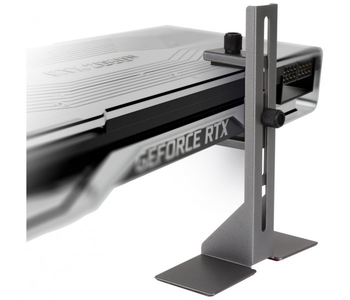 El soporte metálico de Abysm Gaming ofrece la opción de instalar tu GPU en posición vertical u horizontal, adaptándose a tus necesidades y preferencias. Con su diseño deslizante y de bloqueo, se ajusta fácilmente a cualquier chasis, brindando la máxima estabilidad y protección para tu tarjeta gráfica.