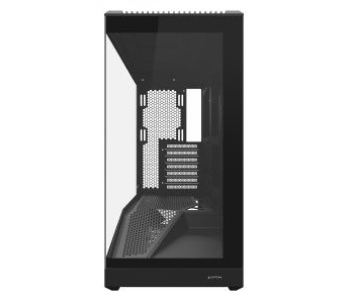 El lateral de la caja, con su inclinación estratégica, no solo le da un look agresivo, sino que también mejora la circulación del aire. Este diseño innovador facilita que la fuente de alimentación (PSU) reciba aire fresco de manera eficiente, optimizando el rendimiento general del sistema.
