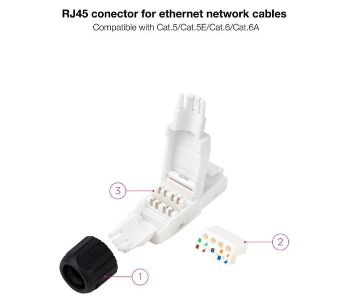 Conector RJ45 UTP Cat.6A, Auto Crimpable, Sin Herramientas (10 Uds), Blanco