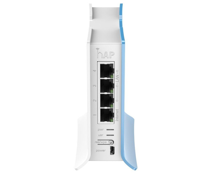 The hAP lite is equipped with a powerful 650MHz CPU, 32MB RAM, dual chain 2.4GHz onboard wireless, four Fast Ethernet ports and a RouterOS L4 license.