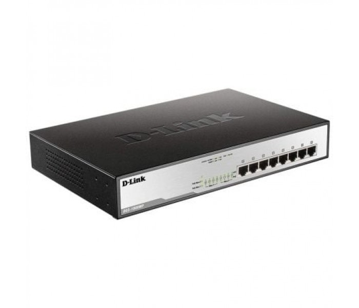 Especificaciones:. . Number of ports: 8 ports. Main type of ports: 1000BASE-T Gigabit Ethernet. Switching capacity: 16 Gbps. PoE options:. 802.3af. 802.3at. Number of PoE ports: 8. Fanless: Sí. D-Link Green: Sí. 802.3az Energy-Efficient Ethernet support: Sí . Form Factor:. Desktop. Rackmountable. Housing: Metal. Jumbo frame: Sí. Cable diagnostics: Sí. MAC address: 8K