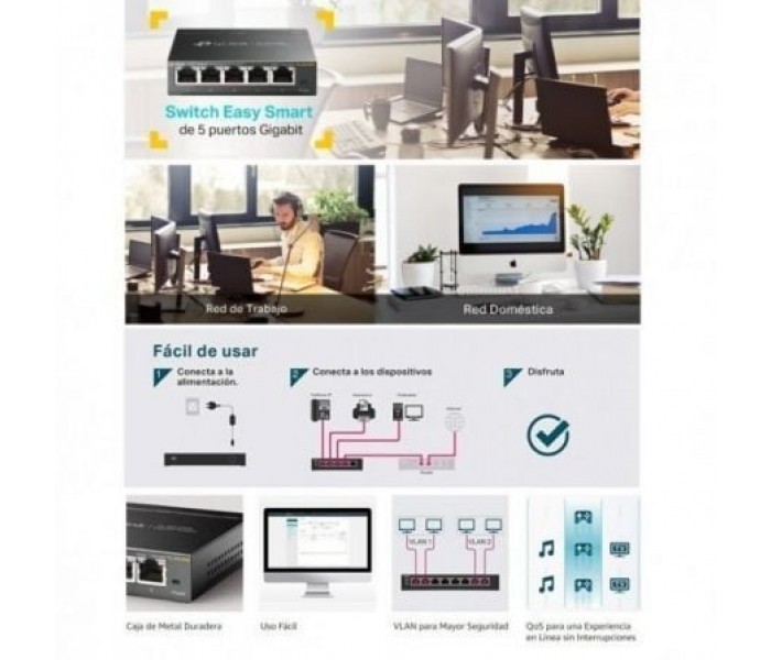 Switch TP-Link TL-SG105PE 5 Puertos/ RJ-45 10/100/1000 PoEEasy Smart Switch Gigabit de 5 puertos con PoE + de 4 puertos Cinco puertos RJ45 de 10/100/1000 Mbps Equipado con cuatro puertos 802.3af / at PoE + con hasta 30 W para cada puerto, los datos y la energía se pueden transferir en un solo cab..