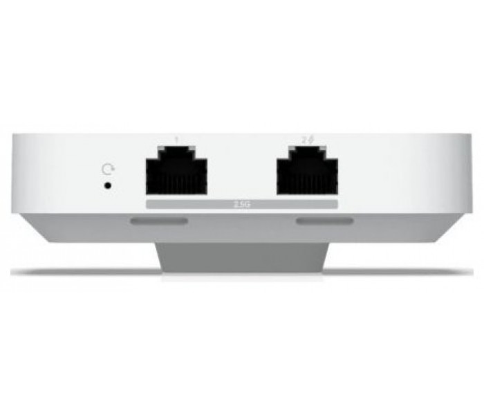Punto de acceso WiFi 7 montado en la pared con 4 flujos espaciales y un conmutador PoE integrado de 2.5 GbE diseñado para entornos de hospitalidad.