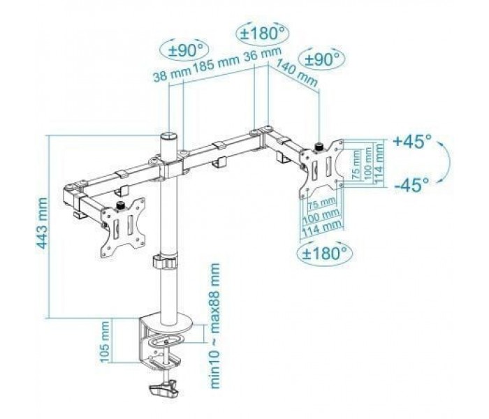 SOPORTE DE MESA CON BRAZO ARTICULADO EQUIP 650112 - PARA PANTALLAS DE 13-27"/33-68.5CM - PESO MÁXIMO 9KG - VESA MÁXIMO 100X100 - ALUMINIO? Construcción de aluminio resistente y ligero? Sugerido Tamaño de pantalla 13 ”-27” ? Capacidad de carga 9 kg / 19.8lbs? Estándar de montaje VESA 75..