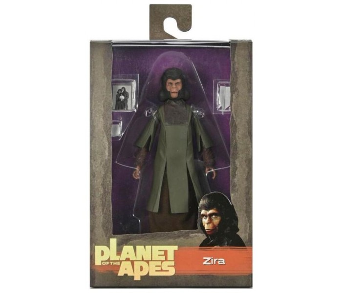 Neca presenta la figura de Zira. Mide 18 cm y está basada en el personaje de la pelÃcula de 1968 ""Planet of the Apes"" (""El planeta de los simios"" en España). Incluye 1x avión de papel, 1x foto y 1x nota. Se presenta en una caja con ventana.