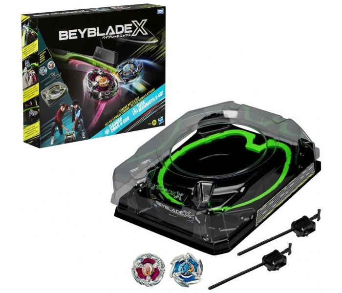 Vive la emoción de la próxima generación de tops beyblade x. el set de batalla xtreme de beyblade x tiene todo lo que necesitas para alcanzar el dominio beyblade. ¡el beystadium xtreme y los 2 tops