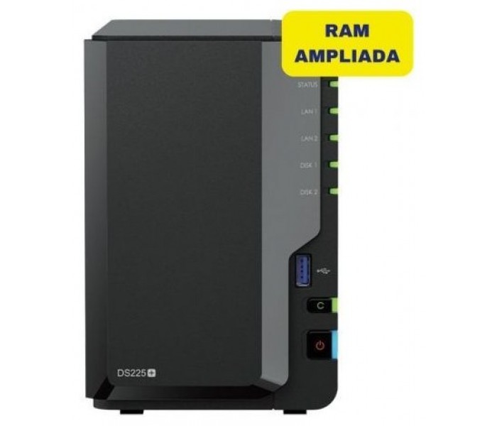 NAS Synology Diskstation DS725+/ 2 Bahías 3.5"- 2.5"/ 16GB DDR4/ Formato TorreDiskStation DS725+ Almacenamiento compacto y capaz para el hogar, pequeñas empresas y edge 2 bahías con expansión Hasta 140 TB de almacenamiento bruto con unidad de expansión Almacenamiento de alta velocidad Puerto in..