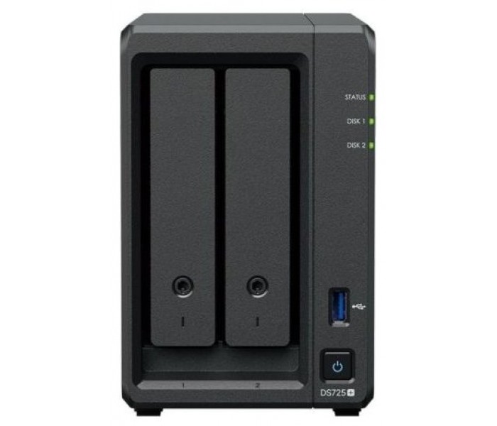 NAS Synology Diskstation DS725+/ 2 Bahías 3.5"- 2.5"/ 32GB DDR4/ Formato TorreDiskStation DS725+ Almacenamiento compacto y capaz para el hogar, pequeñas empresas y edge 2 bahías con expansión Hasta 140 TB de almacenamiento bruto con unidad de expansión Almacenamiento de alta velocidad Puerto in..