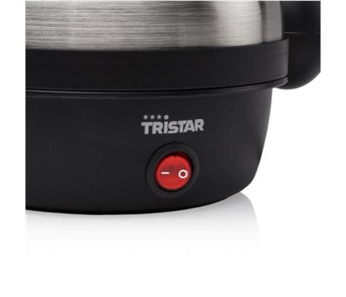 El cocedor de huevos Tristar no solo es excelente para cocer huevos, también tiene un aspecto lujoso. La tapa de acero inoxidable tiene una salida de vapor. Mida la cantidad adecuada de agua necesaria para hacer huevos blandos, semicocidos o cocidos con el vaso medidor incluido, y viértala en la placa calefactora. El vaso medidor tiene un perforador de huevos en su parte inferior. Perfore los huevos para que no se agrieten durante la cocción.Contenido de la caja: