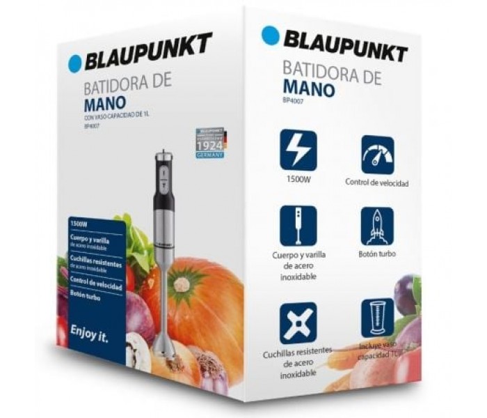 BATIDORA DE MANO BLAUPUNKT 1500W ACERO INOX - SEL. VELOCIDAD Y VASO - BOTON TURBO