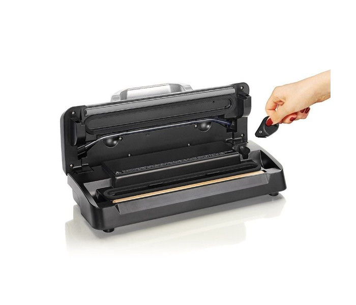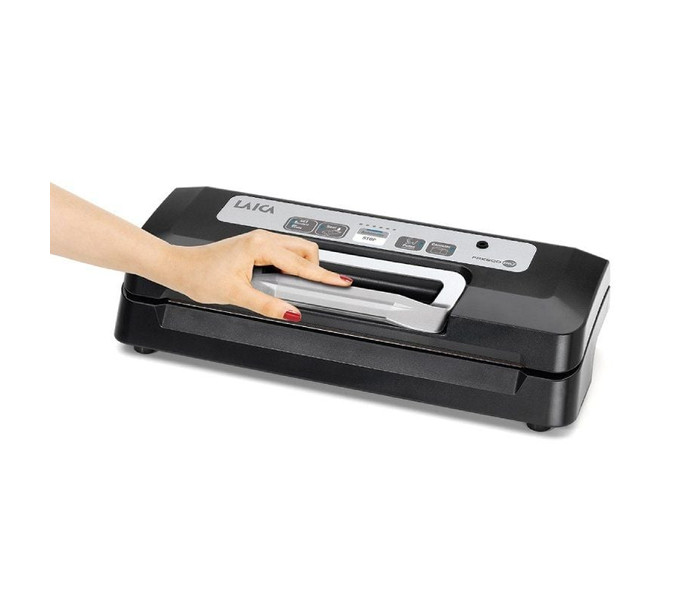 Envasadora al vacío Laica VT3119/ 110WMáquina de envasado al vacío VT3119 DESCRIPCIÓN Ajuste de sellado doble (estándar – fuerte) Asa de bloqueo Bandeja de líquidos extraíble y lavable Uso de bidones FICHA DE DATOS DIMENSIONES 40x16,5x11,5 cm PESO 1,75..