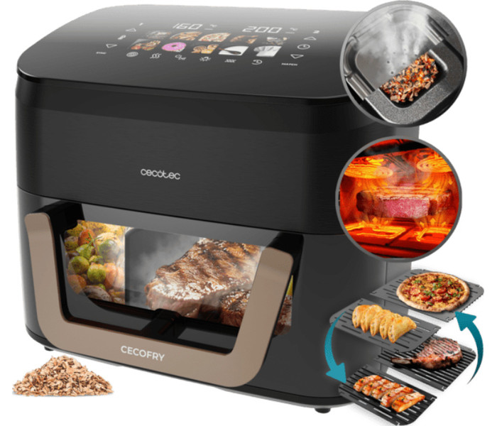 CECOTEC CECOFRY&GRILL SMOKIN"PRIME 8500Cecofry&Grill Smokin"PrimeLa esencia de la barbacoa más sofisticadaAhúma tus recetasDisfruta del auténtico sabor a parrilla en casa, sin humos y de forma saludable. Añade chips de madera y transforma tus recetas con un toque ahumado único.Doble GrillCocción env..