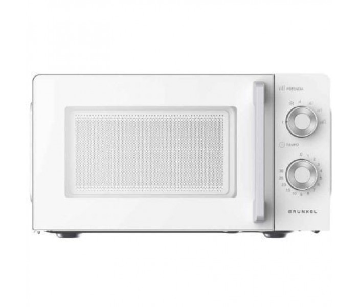El microondas Grunkel MW-20MG es una solución práctica y eficiente para calentar, cocinar y descongelar alimentos en tu hogar. Con una capacidad de 20 litros y una potencia de 700W, este electrodoméstico te ofrece un rendimiento óptimo para el día a día. Sus 6 niveles de potencia permiten ajustar la intensidad del calor según tus necesidades, mientras que la función de descongelado facilita la preparación de alimentos congelados de manera rápida y uniforme. Su temporizador de 30 minutos te brinda un control preciso sobre el tiempo de cocción. Diseñado para una máxima comodidad, cuenta con una apertura de puerta con tirador, que garantiza un acceso fácil y seguro. Su bandeja de cristal de 24.5 cm de diámetro asegura una distribución homogénea del calor para mejores resultados. Compacto y funcional, el MW-20MG es el complemento ideal para cualquier cocina moderna.Especificaciones