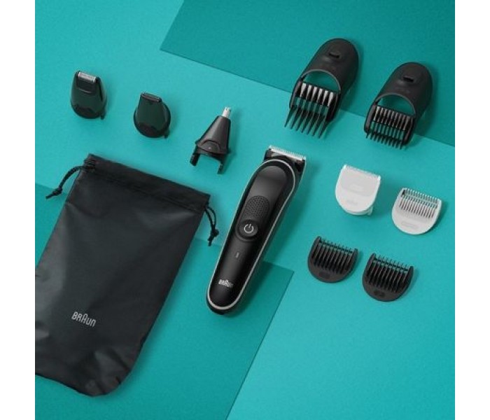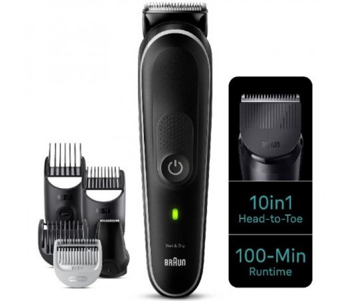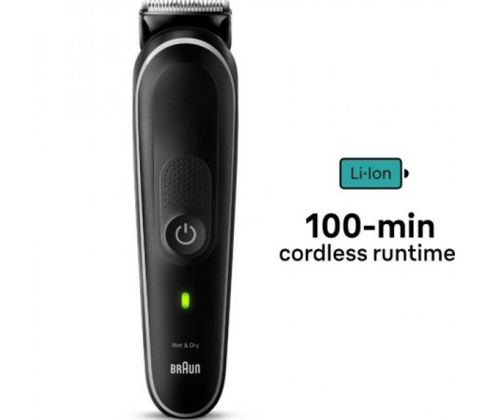 Braun Multigroomer MGK3225. Longitud mínima del cabello: 0,5 mm, Longitud máxima del cabello: 2,1 cm, Tipo de control: Botones. Color del producto: Negro. Fuente de energía: Batería, Tiempo de funcionamiento: 50 min, Tipo de batería: Batería integrada..