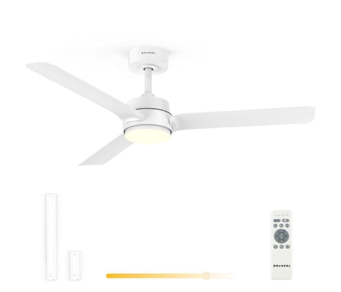 Ventilador de techo GRUNKEL SKYEASY47 de 47” con motor DC de 30W silencioso, 3 aspas, 6 velocidades, rotación inversa, luz LED 18W y mando a distancia.