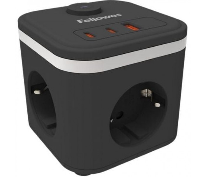 - Su forma cúbica reduce la acumulación de enchufes y deja más espacio para los dispositivos.