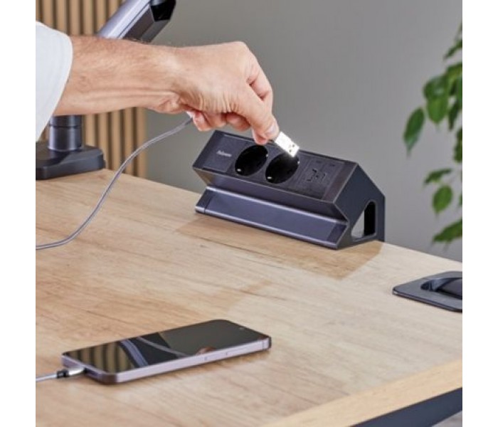 - Carga tus dispositivos sin esfuerzo y mantén tu espacio de trabajo limpio y ordenado con este módulo de alimentación de sobremesa de fácil acceso..
