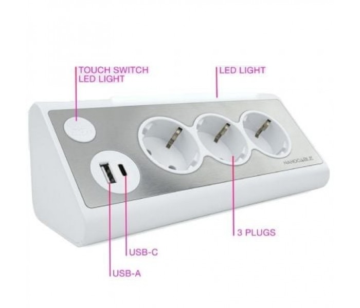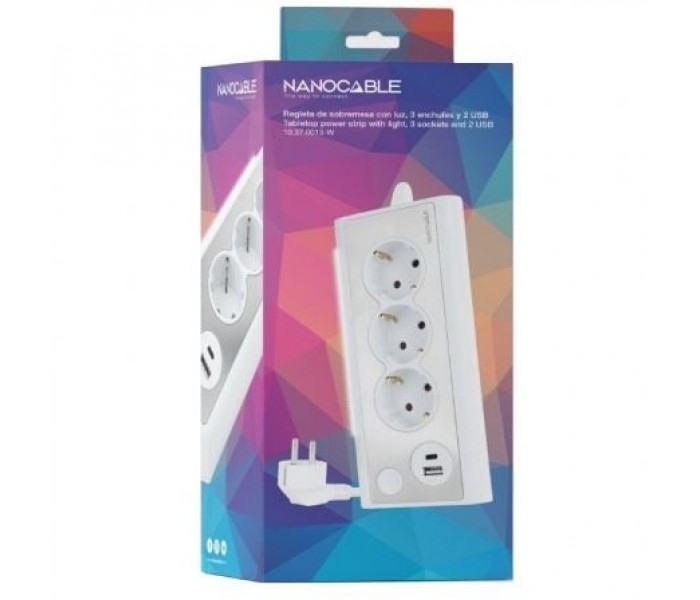 Especificación:. . 3 tomas de corriente con toma de tierra. 2 puertos USB de carga (USB-C y USB-A). USB-A: 5V/3A, 15W. 9V/2A, 18W. 12V/1.5A, 18W.. USB-C: 5V/3A, 15W. 15V/2A, 18W. 12V/1.5A, 18W.. USB-A + USB-C: 5V/3A, 15W.. Iluminación led con interruptor. Cable de 1.5 m. Protección infantil. Voltaje: 230V-50Hz. Certificado CE, ROSH, GS y REACH. Medidas del producto: 200x70x70 mm