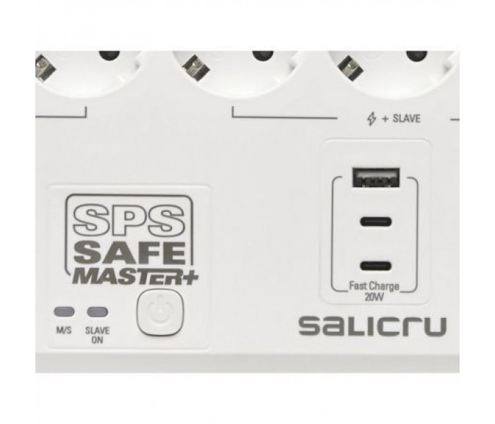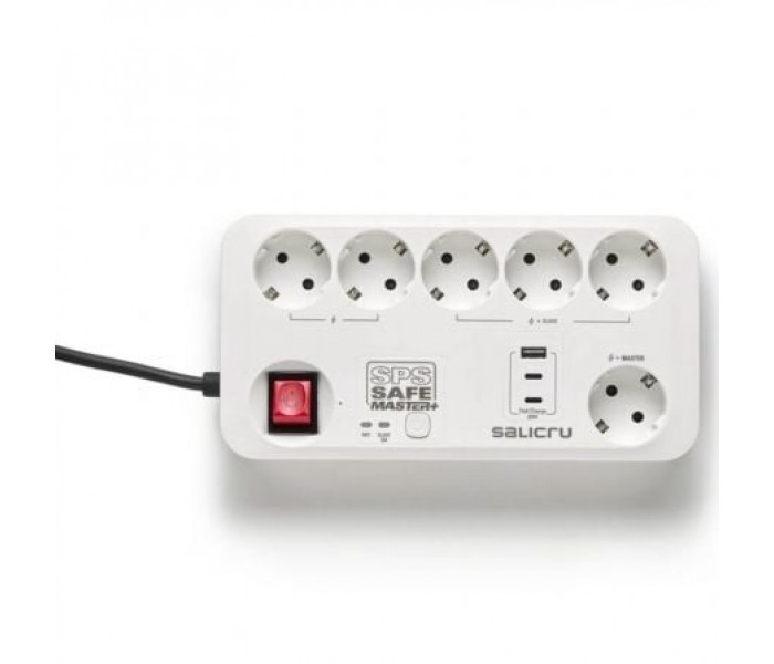 Protege tus dispositivos electrónicos de las imprevisibles fluctua-ciones eléctricas con la gama SPS SAFE S de Salicru. Una gama que ofrece entre 4 y 6 tomas de corriente CA, y dos modelos que integran dos puertos USB-C y un puerto USB-A de carga de hasta 20W, garantizando una protección fiable contra picos de tensión, rayos y contaminación eléctrica. Son ideales para portátiles, consolas de videojuegos, altavoces y otros equipos electrónicos de tamaño medio, proporcionando también una carga segura para tus dispositivos móviles.