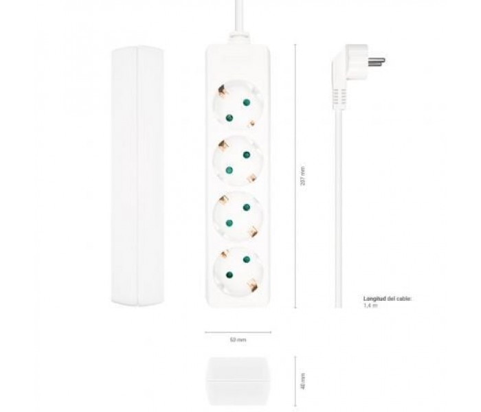 - Base multiple (Regleta de enchufes) 4 tomas sin interruptor con cable 3x1.5mm2