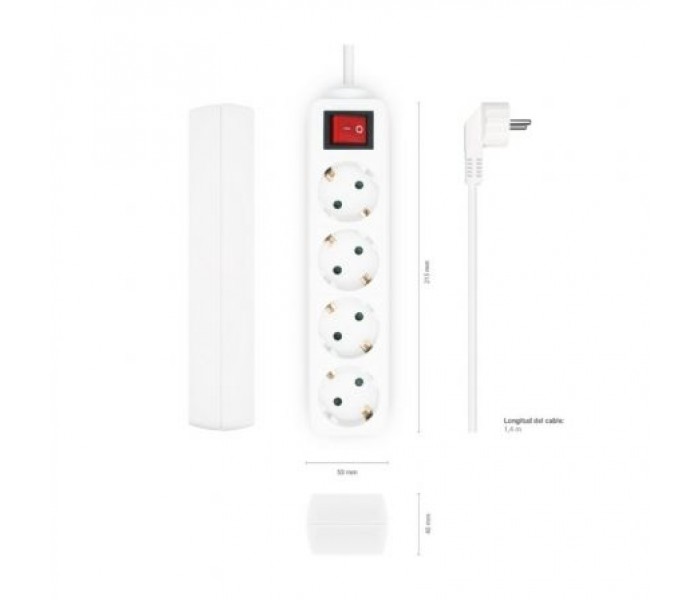 AISENS® – Base múltiple (Regleta de enchufes) 4 tomas con interruptor con cable 3×1.5mm2.