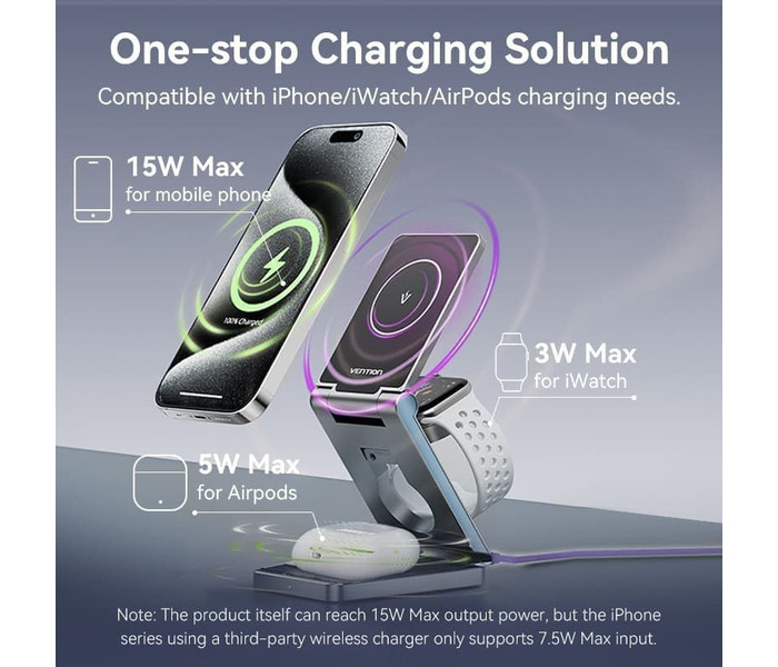 Mantenga todos sus dispositivos encendidos sin esfuerzo con el cargador MagSafe 3 en 1 Vention. Perfecto para el hogar, la oficina o los viajes, este soporte de cargador ofrece comodidad, seguridad y eficiencia incomparables en un diseño elegante y compacto.