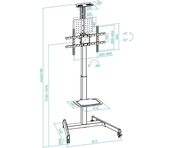 Ajuste de altura máx. vesa: 600x400 máx. capacidad de carga: 50 kg altura ajustable del estante para cámara - dvd para la posición deseada diseño de inclinación libre para múltiples ángulos de visión del monitor ruedas para movilidad - bloqueables para mayor seguridad. rotación de 90 para sostener f..