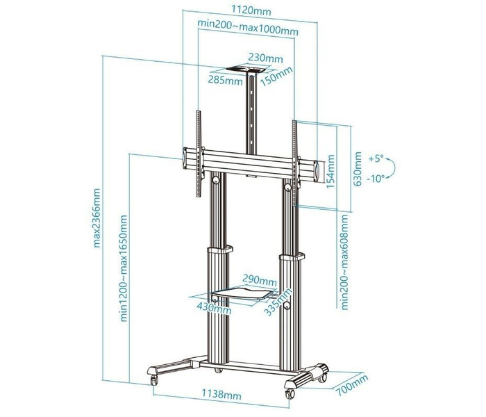 - Rango de ajuste de altura del soporte: 1200-1650 mm
