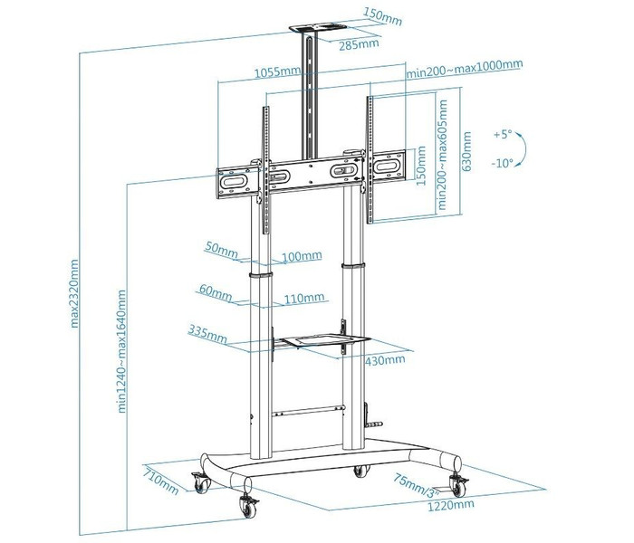 - Rango de ajuste de altura del soporte: 1240-1640 mm