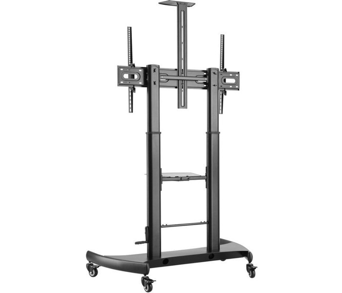 AISENS – Soporte de Suelo ECO con Ruedas y Manivela, Bandeja para DVD y Soporte de Cámara para Monitor/TV 100Kg de 60-100, Negro