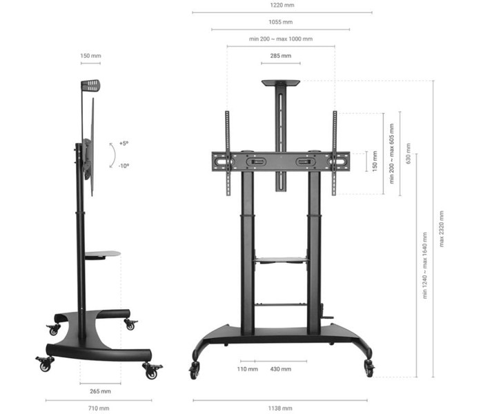 - Rango de ajuste para la altura del soporte TV: ajustable entre 1240 y 1640mm