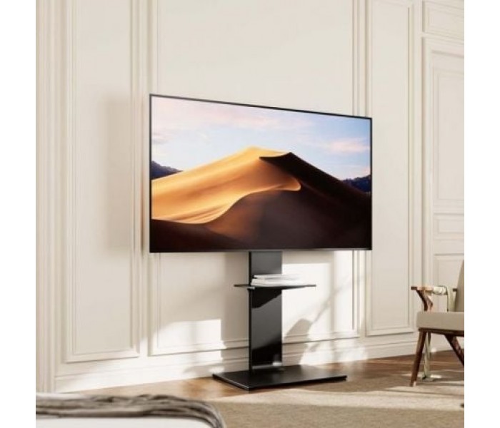 Fabricado en acero de alta resistencia y con pintura electrostática, este soporte de suelo ofrece una solución robusta y elegante para colocar televisores de gran tamaño con total seguridad.