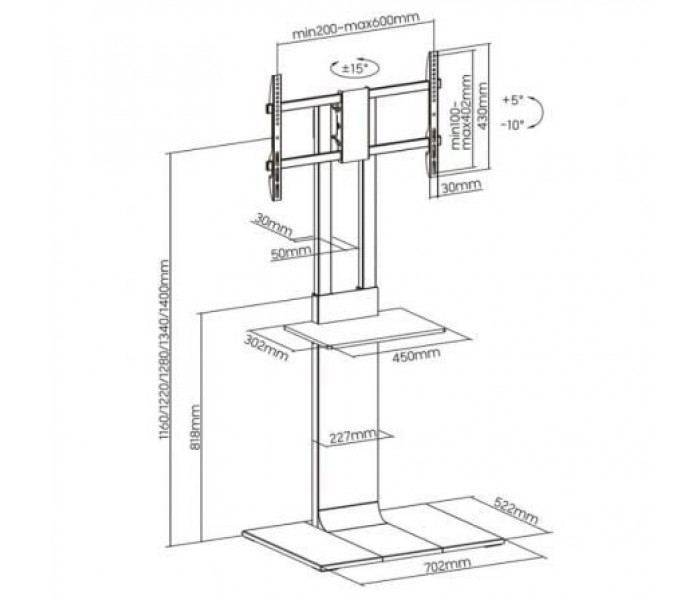 - Ajustes de altura del TV: 1160 / 1220 / 1280 / 1340 / 1400 mm