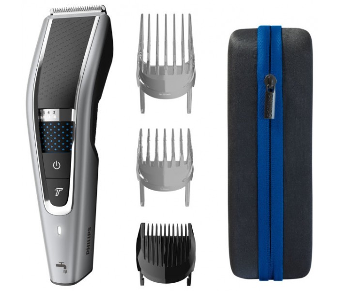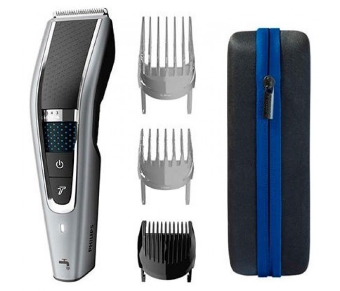 Consigue un corte de pelo uniforme gracias a la tecnologÃa DualCut y Trim-n-Flow Pro. El nuevo diseño del peine-guÃa evita que el pelo de cualquier longitud se atasque, para que puedas terminar el peinado de una pasada. El innovador diseño del peine-guÃa permite que el cabello cortado quede alejado de las cuchillas mientras se está usando, lo que evita que incluso los cabellos de mayor longitud se atasquen en el peine-guÃa. Asà podrás comenzar y terminar tu peinado sin interrupciones. Gira la rueda de ajuste de longitud de corte y bloquee la longitud que deseas. Los dos peines-guÃa ajustables cortan entre 3 mm y 28 mm, con una precisión de 1 mm entre cada longitud. Utiliza el peine-guÃa para la barba de 2 mm para cortar pelos cortos o para perfilar tu barba. Retira el peine-guÃa para un corte apurado de 0,5 mm. El cortapelos es resistente al agua, para una fácil limpieza sin complicaciones debajo del grifo. Enjuaga bien solo con agua para que el cortapelos siga funcionando como el primer dÃa. El cortapelos Series 5000 ha sido diseñado con facilidad de uso, comodidad de manejo y sencillez de funcionamiento. La textura especial y el mango permiten mover fácilmente el cortapelos y recortar por toda la cabeza. Mantén el cortapelos, los peines-guÃa y los accesorios organizados en el estuche resistente.