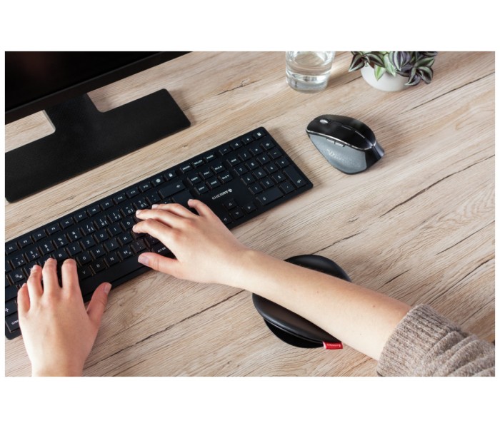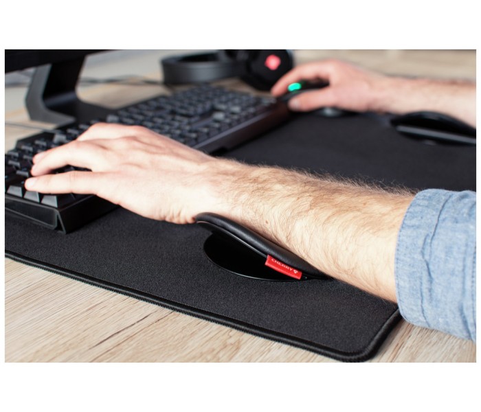 El CHERRY SLIDEPAD ERGO es un reposabrazos deslizante para mejorar la ergonomía en el lugar de trabajo. El reposamanos de escritorio articulado optimiza la posición de la muñeca y el antebrazo, ayudándole a evitar el dolor al usar el mouse y el teclado.Cómodo y ergonómicoTu brazo se acomoda cómodamente en la superficie de apoyo acolchada y aún así puedes disfrutar de total libertad de movimiento. Cambiar de mouse a teclado elimina la necesidad de levantar el brazo. Simplemente se deslizan sin esfuerzo hacia adelante y hacia atrás con la almohadilla, ya sea en una alfombrilla de ratón o en un escritorio. El soporte móvil alivia el brazo y promueve una postura erguida. Esto le apoya en el trabajo diario y ayuda a relajar los hombros. Esto puede prevenir RSI (coloquialmente conocido como ""brazo de ratón""), síndrome del túnel carpiano, problemas de codo o tendinitis.Universal y sin embargo individualEl CHERRY SLIDEPAD ERGO se puede utilizar con cualquier ratón o teclado, incluidos los ratones verticales, por supuesto. La almohadilla se puede usar por zurdos o diestros, o ambidiestros usando una segunda almohadilla. Coloque el brazo donde le resulte más cómodo, desde la parte delantera de la muñeca hasta la parte posterior del codo. Por lo tanto, las áreas de aplicación son muy versátiles, como usted prefiera.Fácil cuidado y duradero.El deslizador ergonómico se puede limpiar o desinfectar fácilmente gracias a la agradable superficie hecha de cuero sintético de alta calidad. La almohadilla todavía se ve como nueva incluso después de un largo período de uso. Está destinado a soportar años de uso.El CHERRY SLIDEPAD ERGO tiene un diseño limpio y minimalista y representa la máxima ergonomía. Un accesorio elegantemente diseñado para cada lugar de trabajo que hace que su vida diaria sea notablemente más fácil.