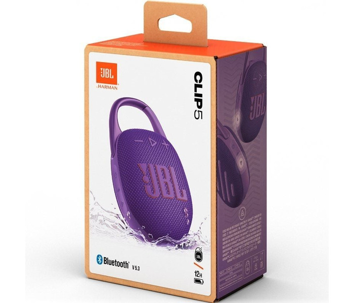 El altavoz Bluetooth ultraportátil JBL Clip 5 es lo suficientemente pequeño como para llevarlo en una mano, pero que no te engañe su tamaño: es grande donde de verdad importa. Un mosquetón ancho y totalmente integrado permite engancharlo a casi cualquier cosa. El potente amplificador y el radiador pasivo ofrecen un sonido JBL Pro más alto y potente, así como unos graves contundentes. Una sola carga te ofrece hasta 12 horas de reproducción e incluso más si Playtime Boost está activado. Su certificación IP67 confirma su resistencia al agua y al polvo, por lo que estará encantado de acompañarte en tu próxima excursión o acampada. Combina dos Clip 5 para obtener un sonido estéreo o conéctalo al instante con varios altavoces compatibles mediante JBL Auracast para obtener un sonido aún mayor en más espacio. Además, está disponible en varios colores, para que encuentres siempre uno que se adapte a tu estilo. Con el JBL Clip 5, cada día es una aventura.