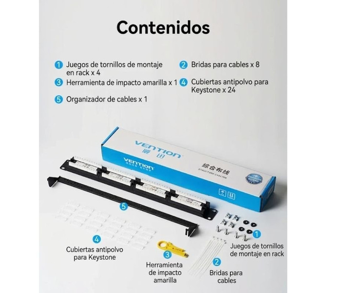 Nombre: Panel de parcheo Cat6 de 24 puertos sin blindaje