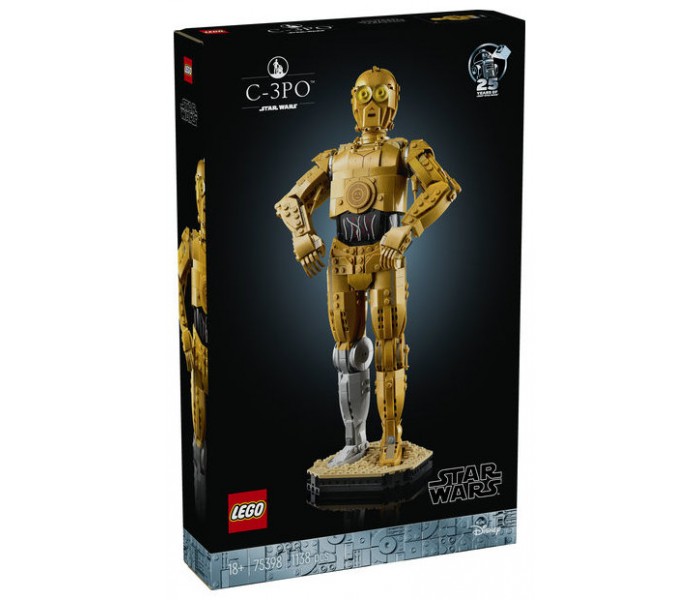 este set lego star wars para adultos contiene también una base con una placa de datos sobre c - 3po y espacio para la minifigura lego de c - 3po incluida - además de un ladrillo conmemorativo del 25